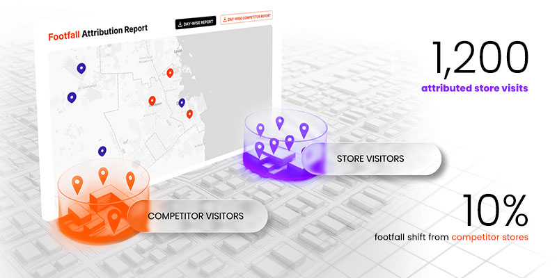 Offline attribution connects digital ad exposure to real-world outcomes such as store visits, footfall lift, and competitor switching. The QSR case study attributed 1,200 store visits and observed a 10% shift from competitor locations.