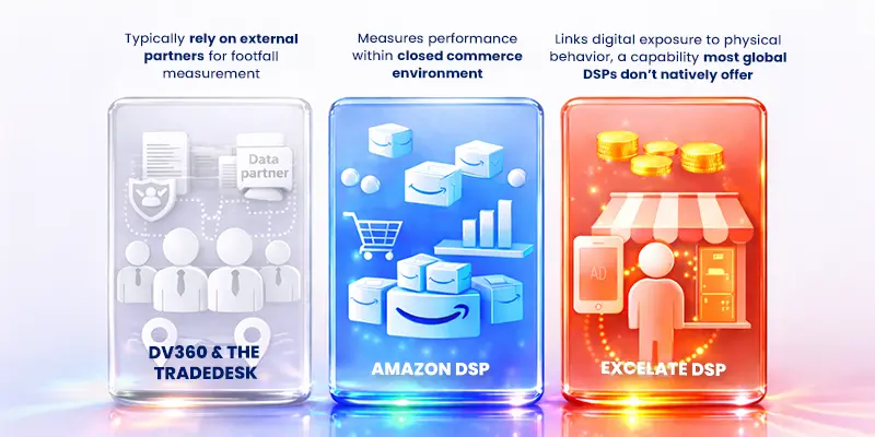 The best DSP for GCC marketers in 2026 depends on whether campaigns require digital-to-physical measurement. Platforms like DV360 and The Trade Desk offer strong global reach and identity solutions. At the same time, Excelate is specifically suited for GCC markets where retail visitation, malls, and offline behavior play a central role, due to its native location and mobility intelligence.